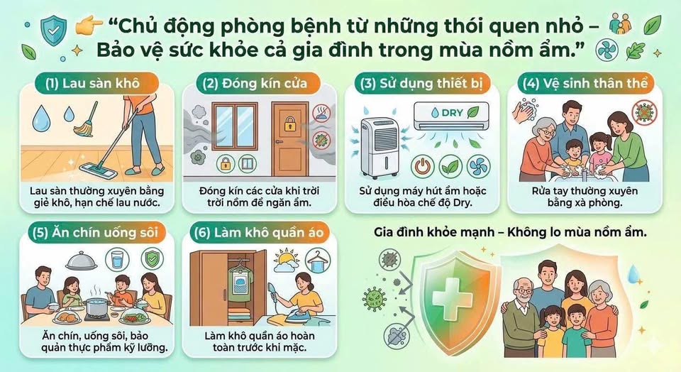 Mùa nồm ẩm với đặc trưng độ ẩm không khí cao, thời tiết ẩm ướt kéo dài là điều kiện thuận lợi cho vi khuẩn, virus và nấm mốc phát triển mạnh. Đây cũng là thời điểm các bệnh đường tiêu hóa gia tăng như: tiêu chảy cấp, ngộ độc thực phẩm, viêm dạ dày
