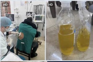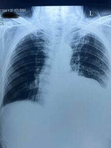 Kết quả thăm dò cho thấy bệnh nhân bị tràn dịch màng phổi hai bên. Trước tình trạng khó thở nặng, các bác sĩ đã kịp thời thực hiện thủ thuật chọc dịch màng phổi cấp cứu, giúp giải phóng dịch, cải thiện thông khí phổi và giảm nhanh các triệu chứng cho người bệnh.